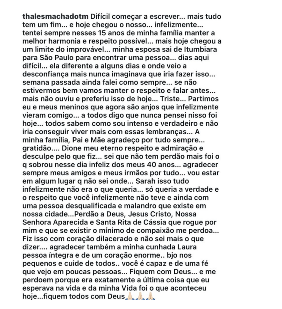Machado era genro do prefeito de Itumbiara, Dione Araújo, além de ocupar cargo de destaque na administração municipal. Horas antes do crime, ele publicou uma mensagem nas redes sociais direcionada aos filhos, que posteriormente foi removida.